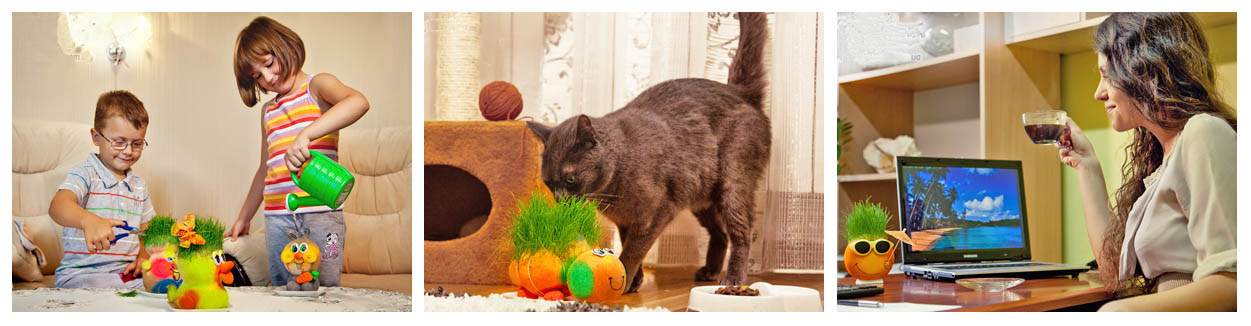 Если Вы хотите увидеть радость на лице Вашего ребенка при появлении первых ростков травы, которые навевают дыхание весны, можете купить декоративные травяные вазоны.